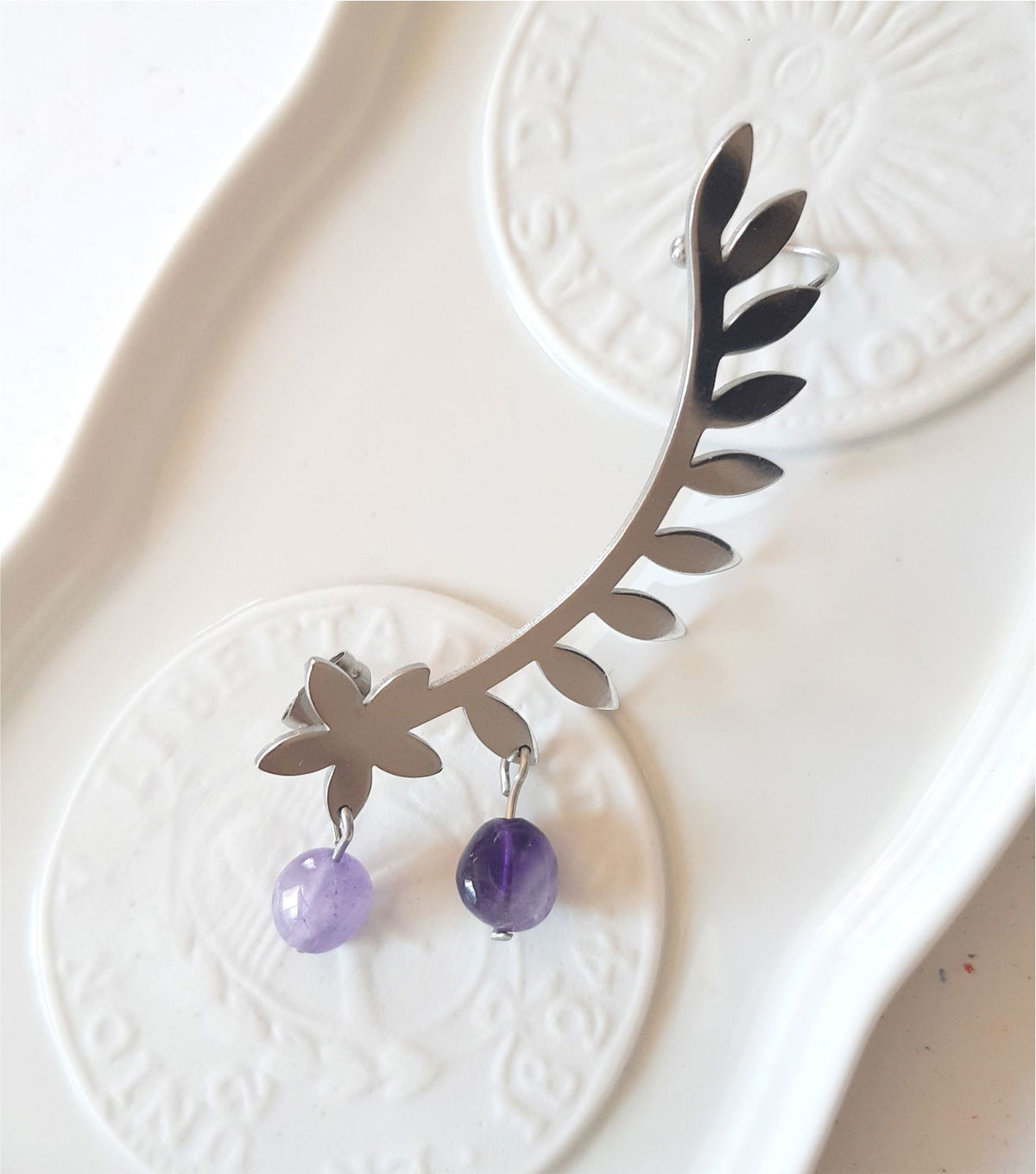 Aro de acero con piedras naturales de Lapislázuli, Amatista ó granate.