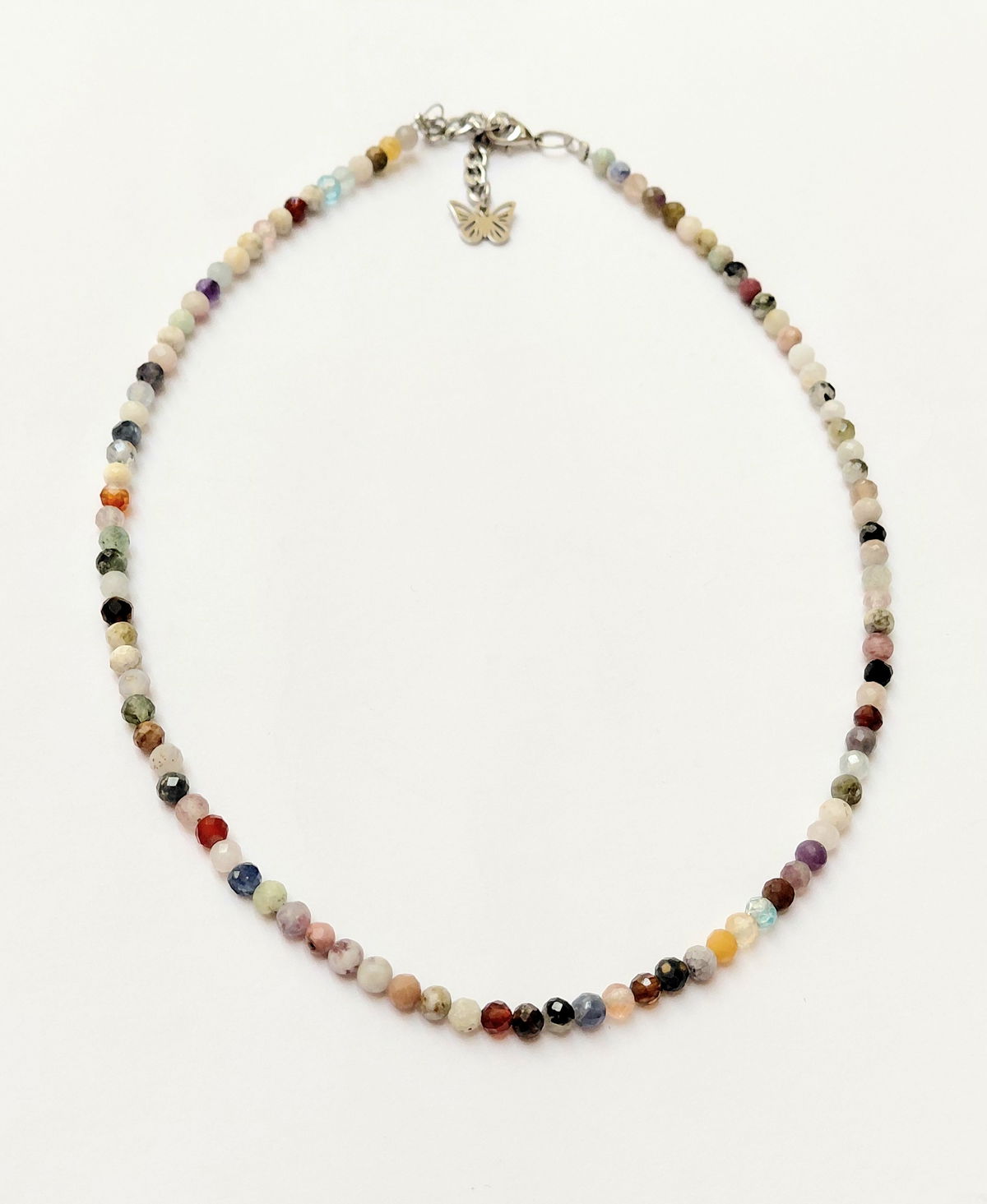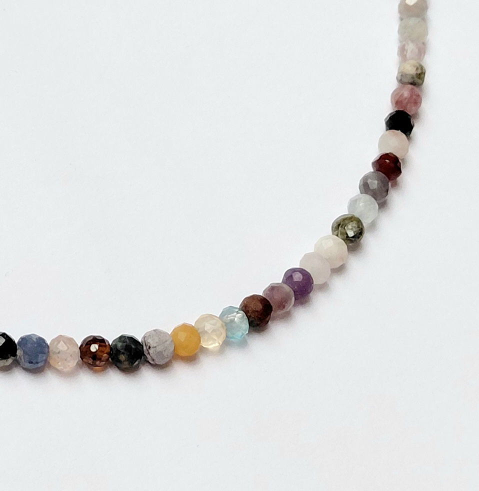 Este collar se denomina abundancia por la cantidad de diferentes piedras naturales de la cual está elaborado , de 3mm facetadas. Ideal por su combinabilidad y la energía de múltiples piedras naturales.