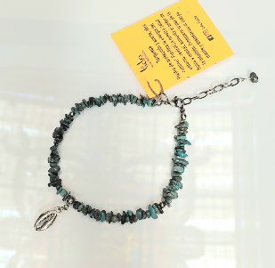 Tobillera elaborada con escallas de turquesa y apliques en acero.