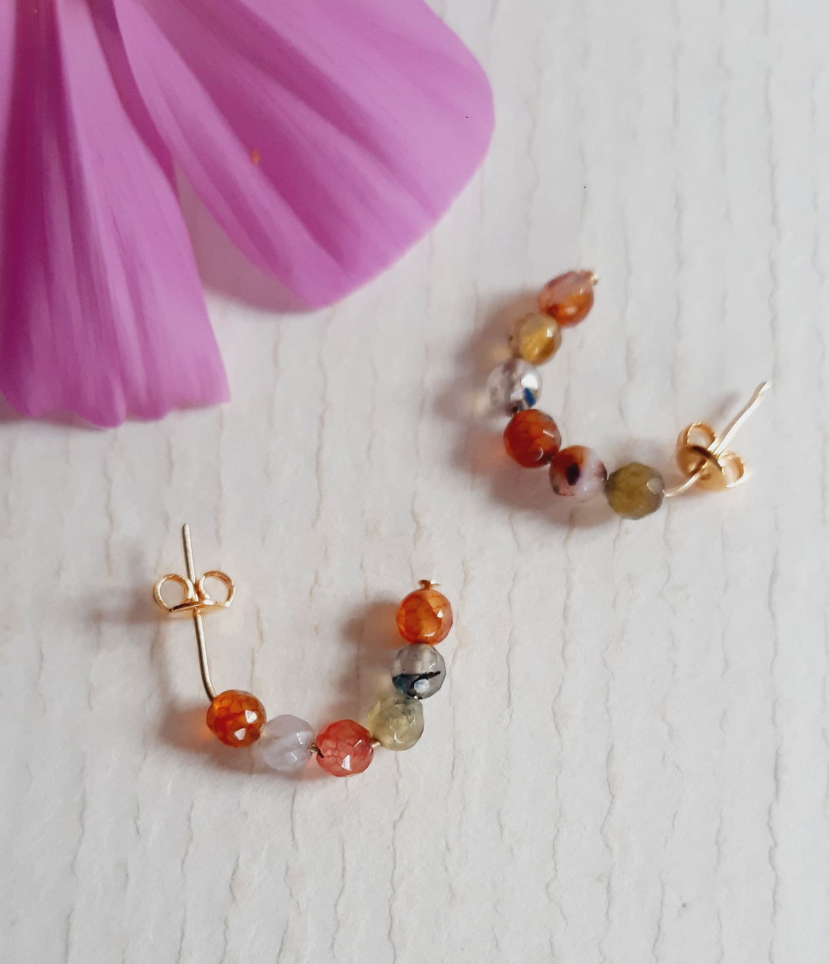 Aros con estructura de acero dorado y piedras naturales de turmalina de colores ó en turmalina negra.