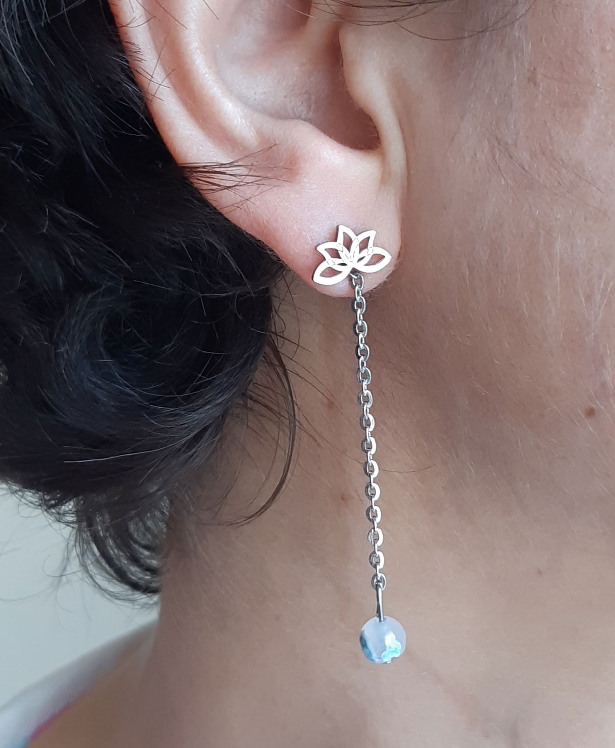 Aros largos de Acero con piedra natural de Ágata celeste.
