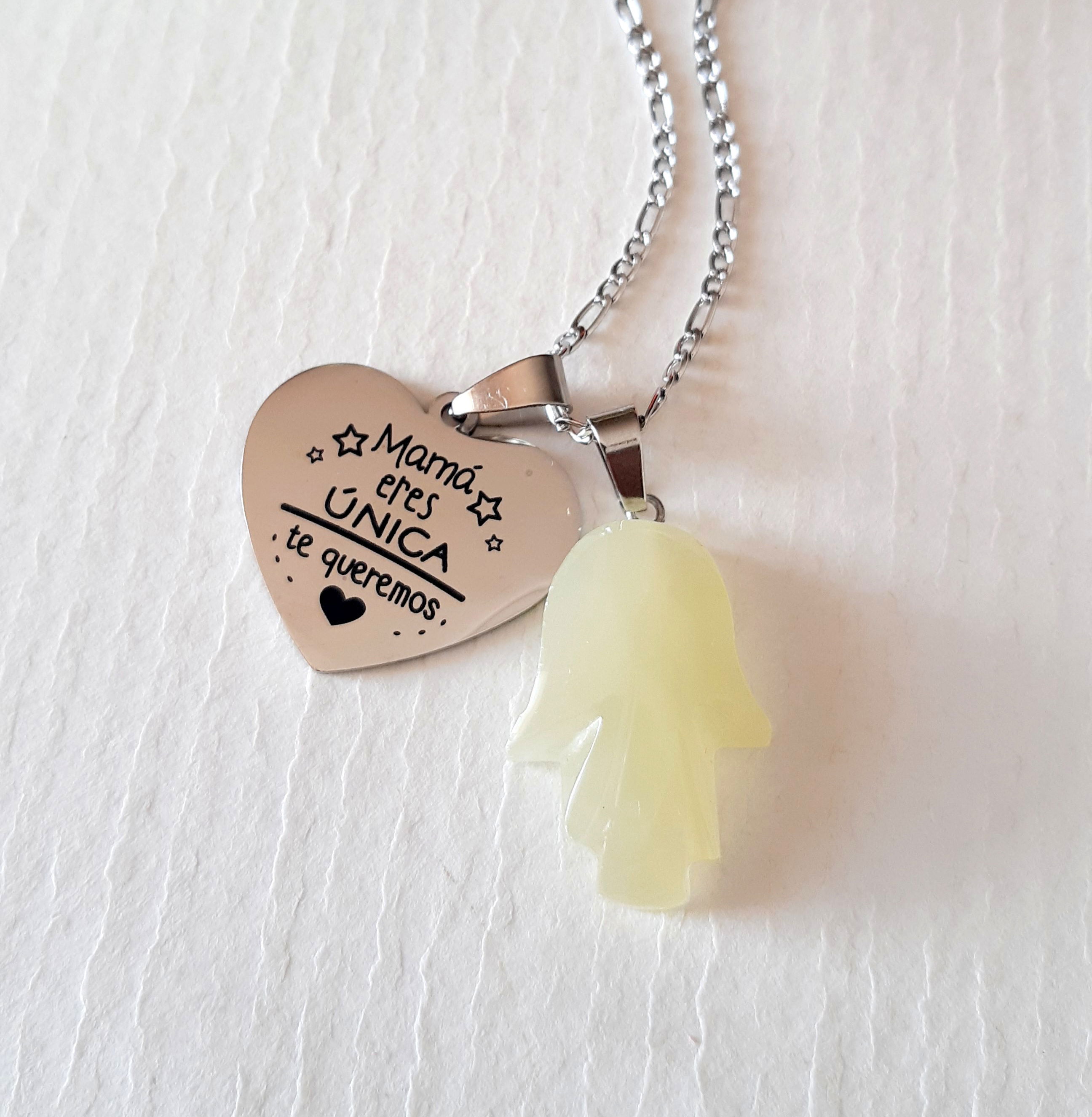 Collar para Mamá Mano Hamsa de Ónix Verde