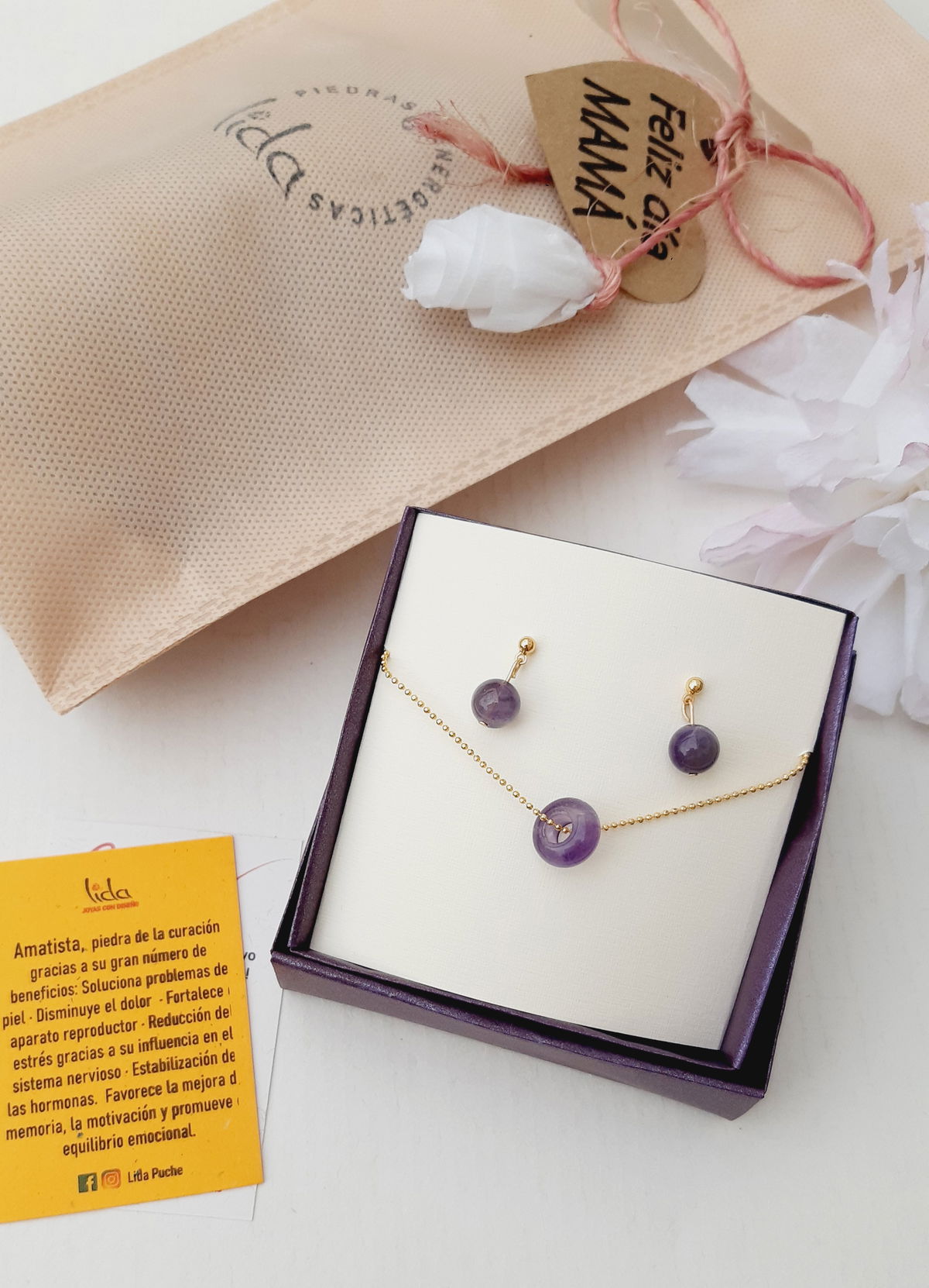 El conjunto viene en su caja de origami con papel satinado, es un regalo ideal para esa persona especial.